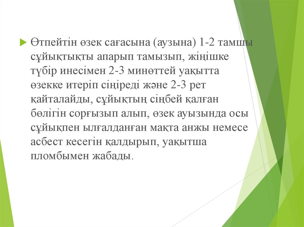 Өтпейтін өзек сағасына (аузына) 1-2 тамшысұйықтықты апарып тамызып, жіңішке