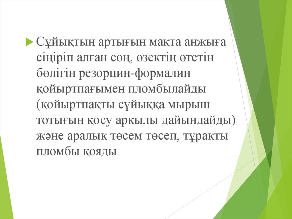 Нашар өтетін түбір өзектерінмумификациялау үшін параформальдегидті