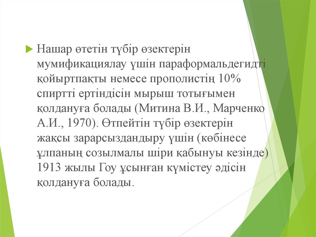 зарарсыздандырғанымен, өліеттенген ұлпаны