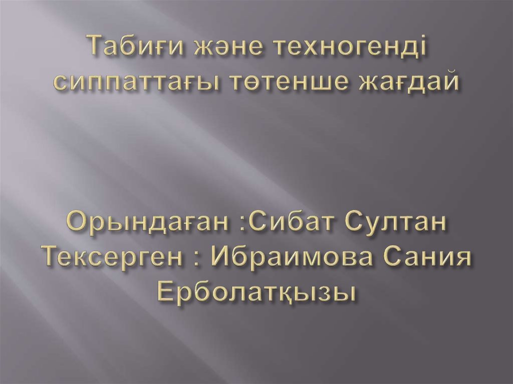 1. Табиғи және техногенді сиппаттағы төтенше жағдай Орындаған :Сибат Султан Тексерген : Ибраимова Сания Ерболатқызы