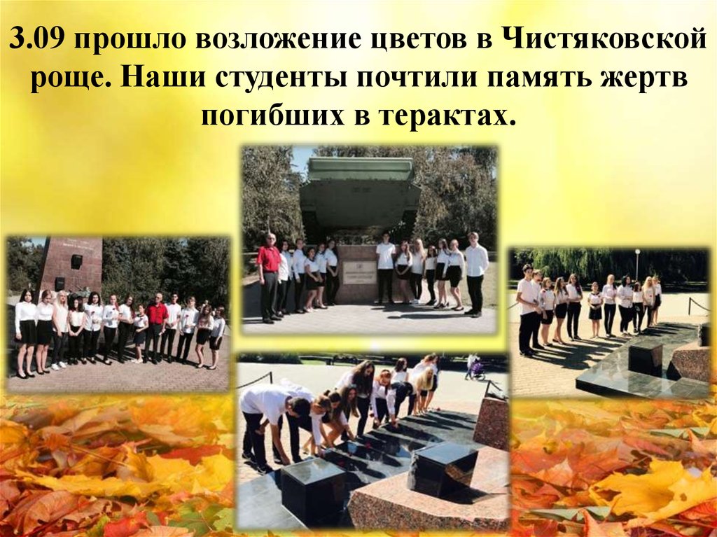 3.09 прошло возложение цветов в Чистяковскойроще. Наши студенты почтили память жертв