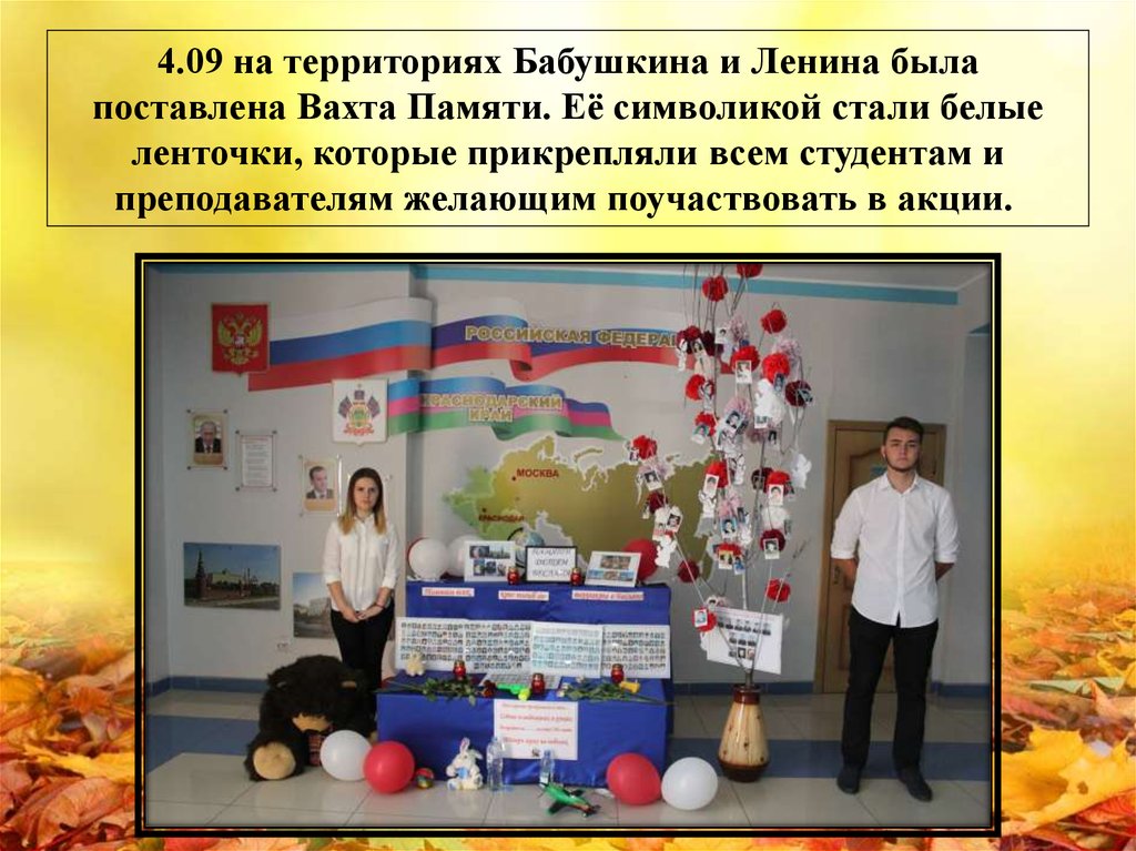 4.09 на территориях Бабушкина и Ленина былапоставлена Вахта Памяти. Её символикой стали белые