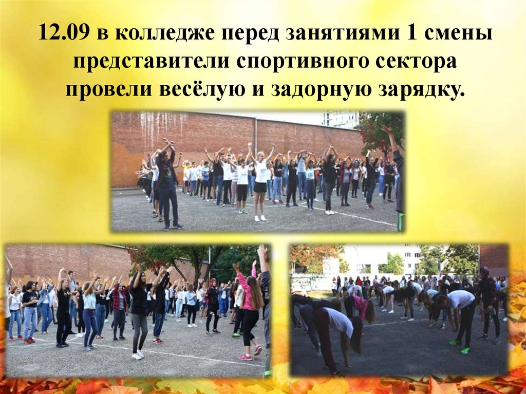 19 .09 по просьбам студентов студсоветрешил провести повторную зарядку.