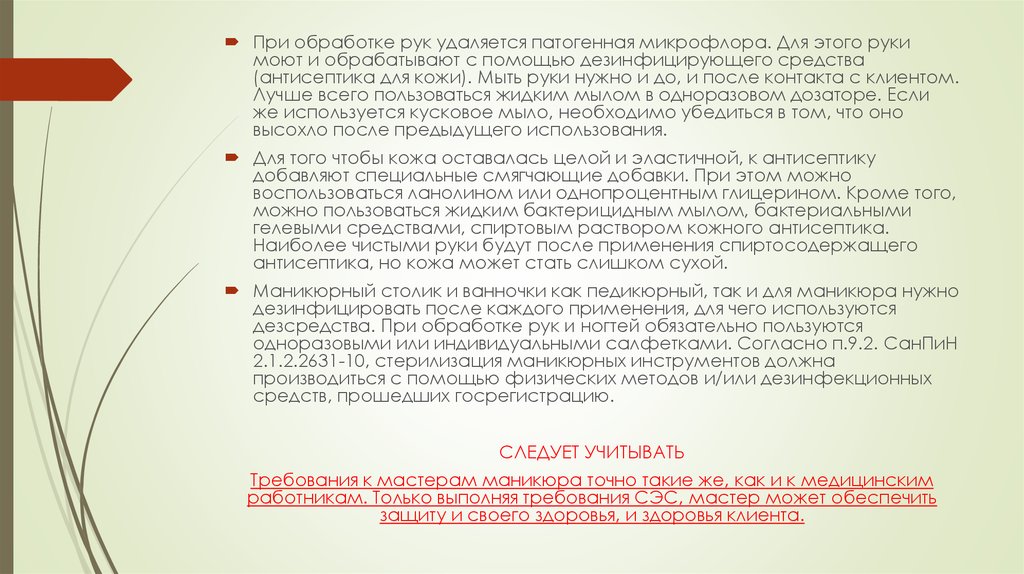 дезсредства. При обработке рук и ногтей обязательно пользуются