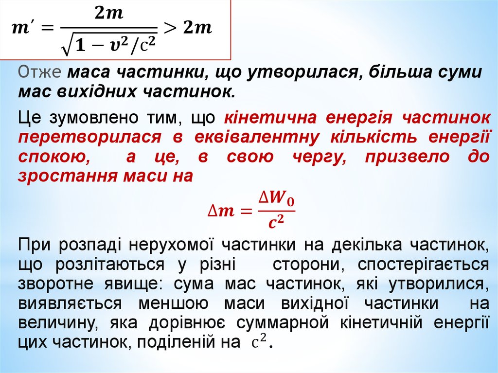 Взаємозв'язок маси і енергії спокою.