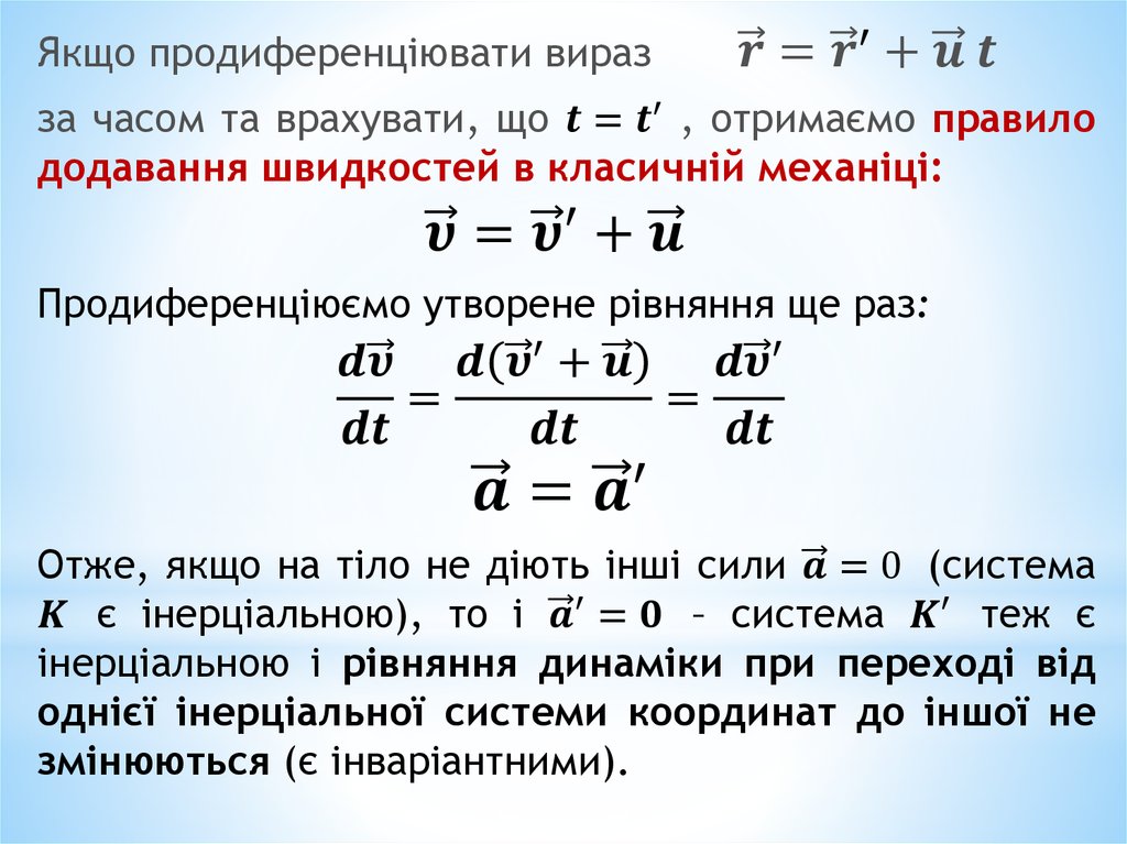 в усіх інерціальних системах відліку законикласичної механіки мають однакову форму.
