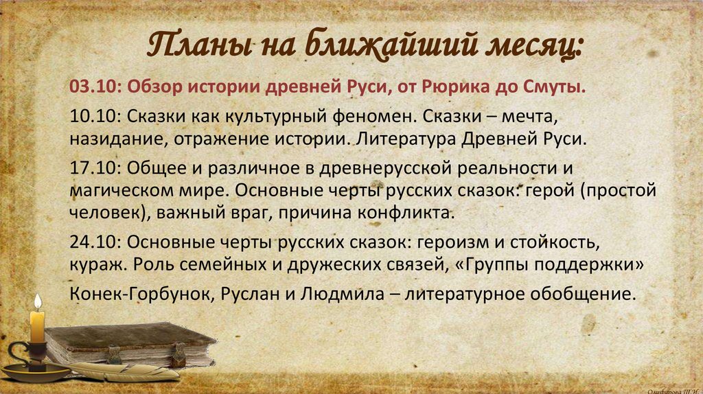 03.10: Обзор истории древней Руси, от Рюрика до Смуты.10.10: Сказки как культурный феномен. Сказки – мечта,