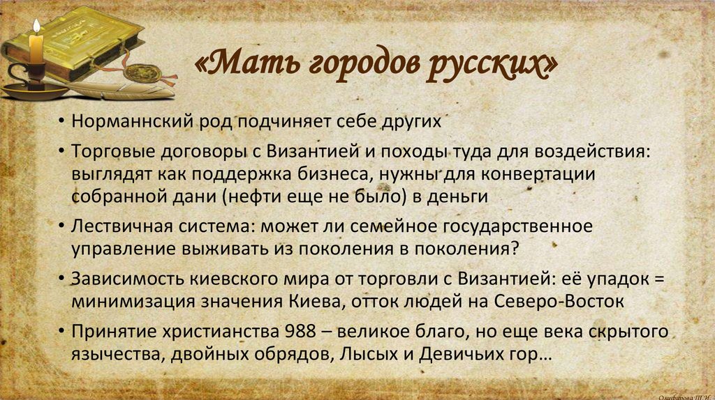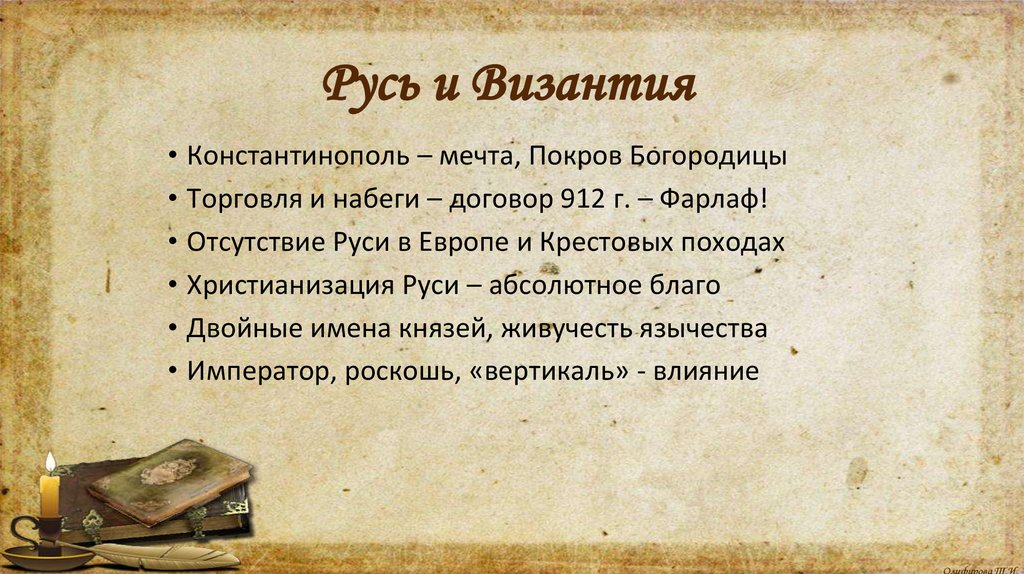 • Константинополь – мечта, Покров Богородицы• Торговля и набеги – договор 912 г. – Фарлаф!