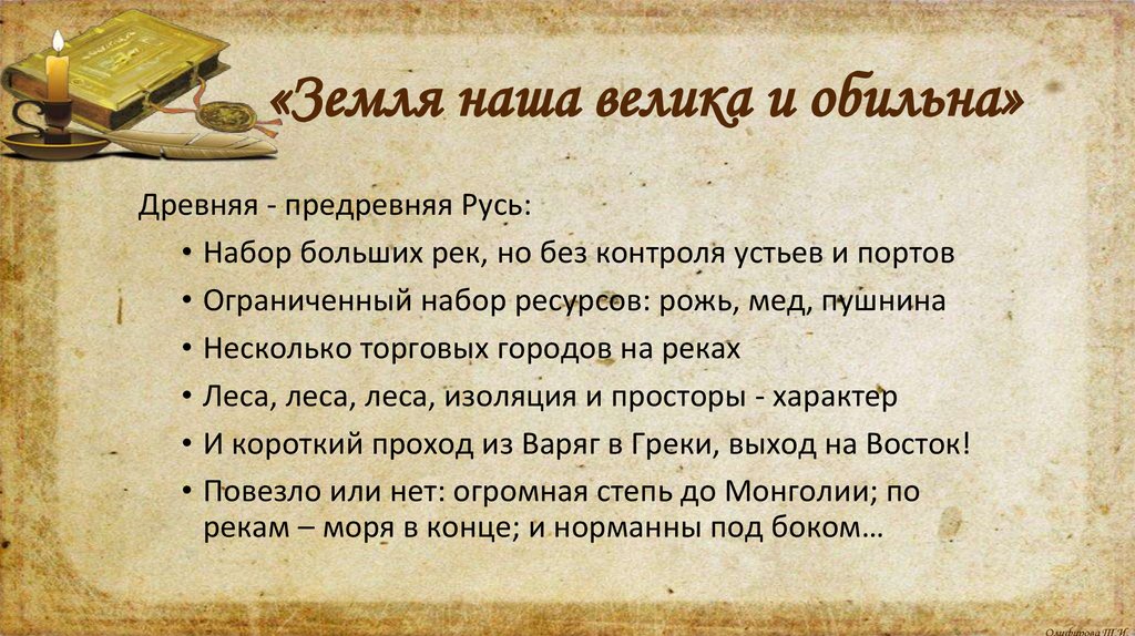 Древняя - предревняя Русь:• Набор больших рек, но без контроля устьев и портов