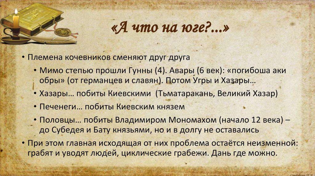 • Половцы… побиты Владимиром Мономахом (начало 12 века) –
