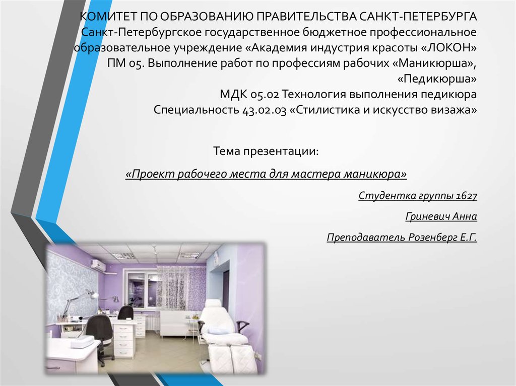 образовательное учреждение «Академия индустрия красоты «ЛОКОН»ПМ 05. Выполнение работ по профессиям рабочих «Маникюрша»,