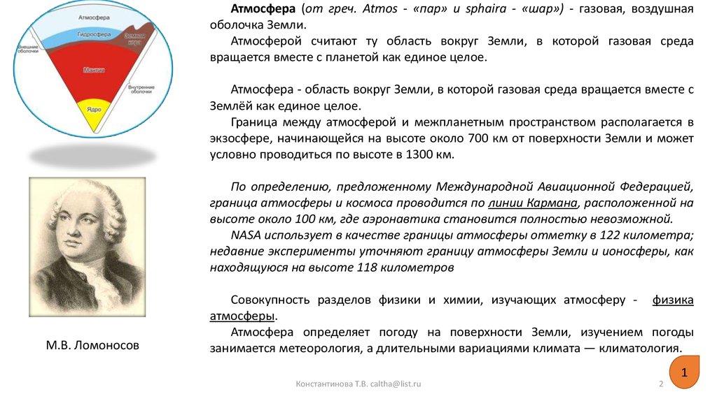 Атмосфера (от греч. Atmos - «пар» и sphaira - «шар») - газовая, воздушнаяоболочка Земли.
