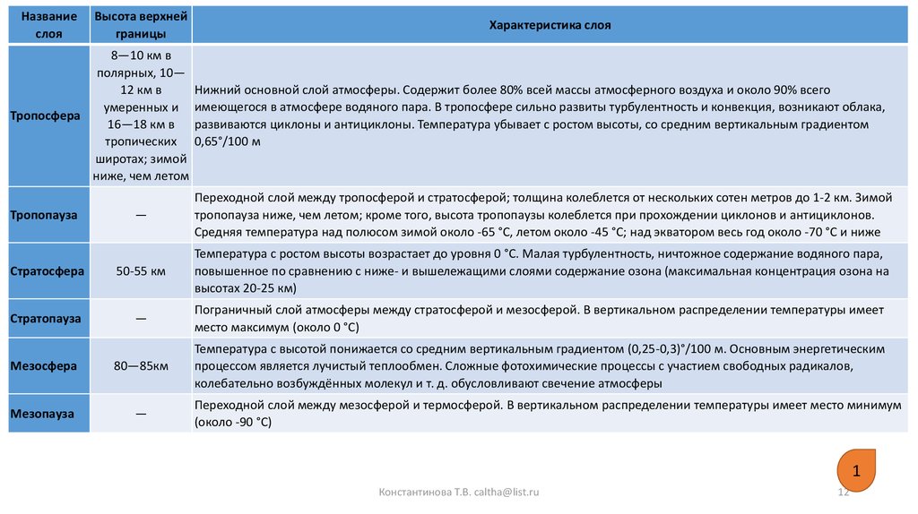 Концентрация газов, составляющих атмосферу, практически постоянна, за