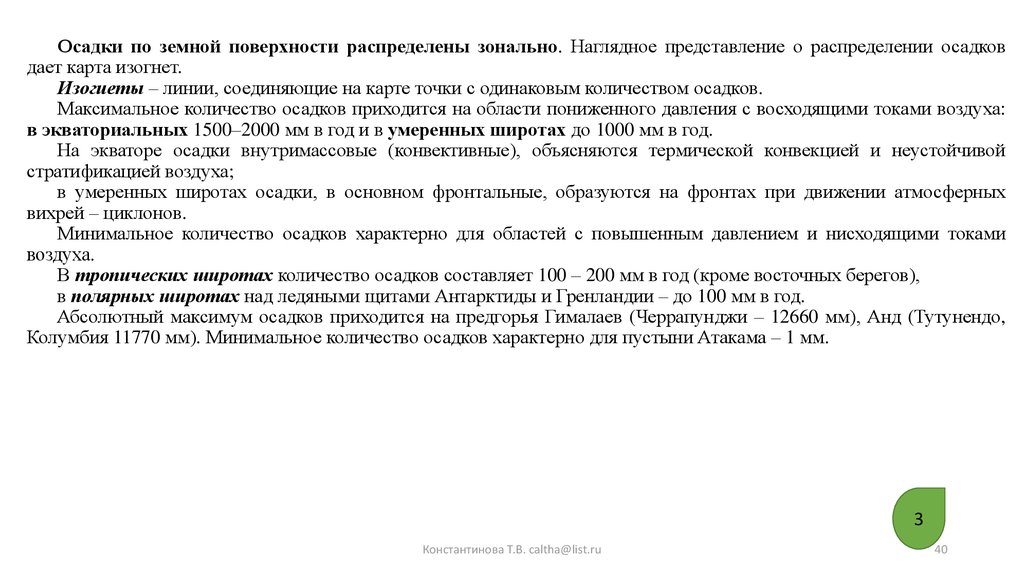 Так, например, в субэкваториальном климатическом поясе (СЭКП) осадки