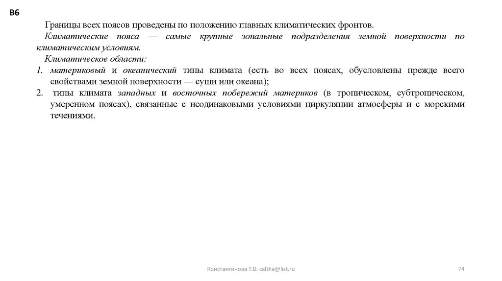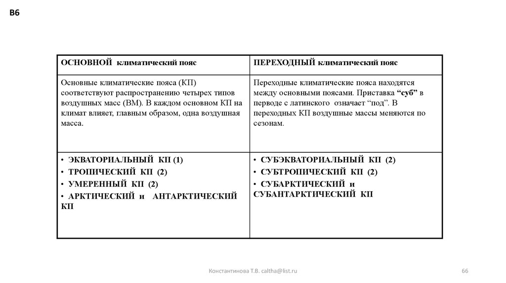 В6Переходные климатические поясаМежду основными климатическими поясами находятся переходные пояса:
