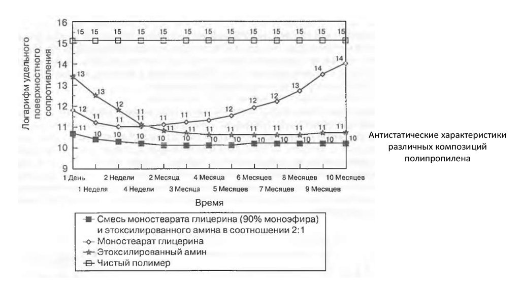 Антистатические характеристикиразличных композиций