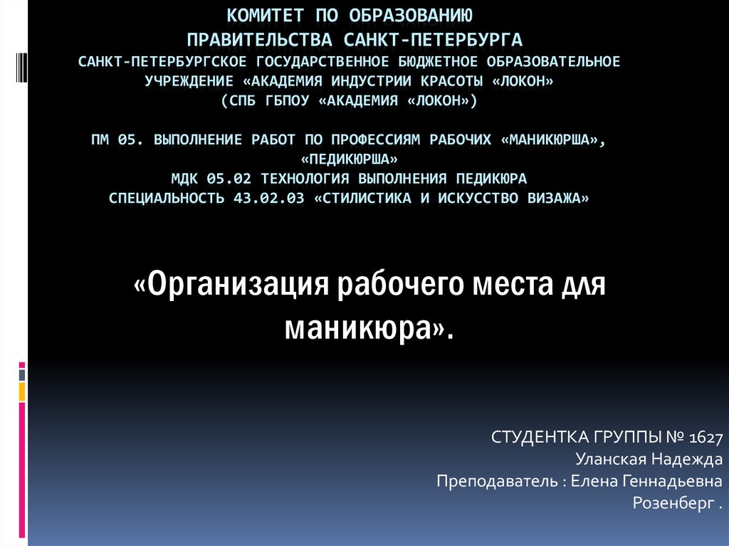 ПМ 05. ВЫПОЛНЕНИЕ РАБОТ ПО ПРОФЕССИЯМ РАБОЧИХ «МАНИКЮРША»,