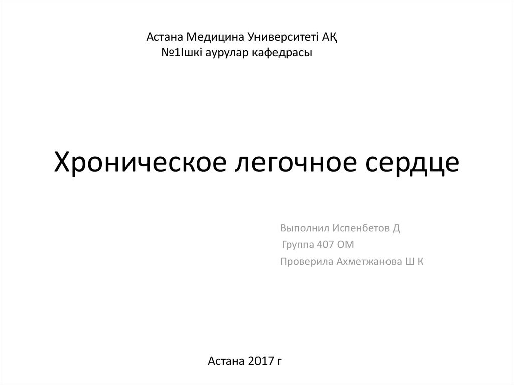 Астана Медицина Университеті АҚ№1Ішкі аурулар кафедрасы