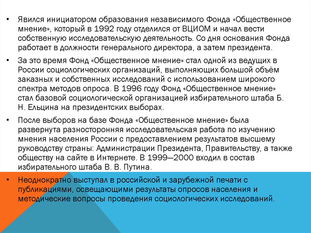 органов государственной власти. ВЦИОМ также проводит большое