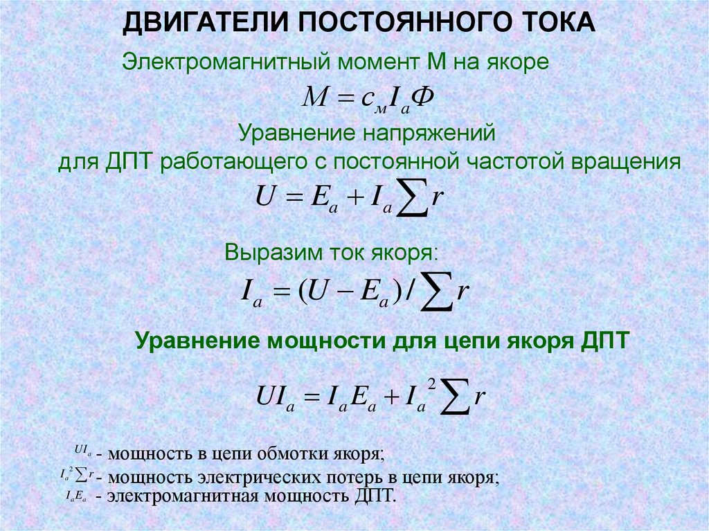 ДВИГАТЕЛИ ПОСТОЯННОГО ТОКАЭлектромагнитный момент М на якоре