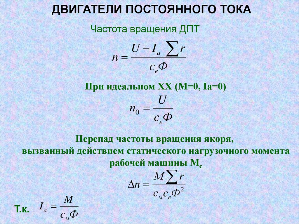 ДВИГАТЕЛИ ПОСТОЯННОГО ТОКАЧастота вращения ДПТ