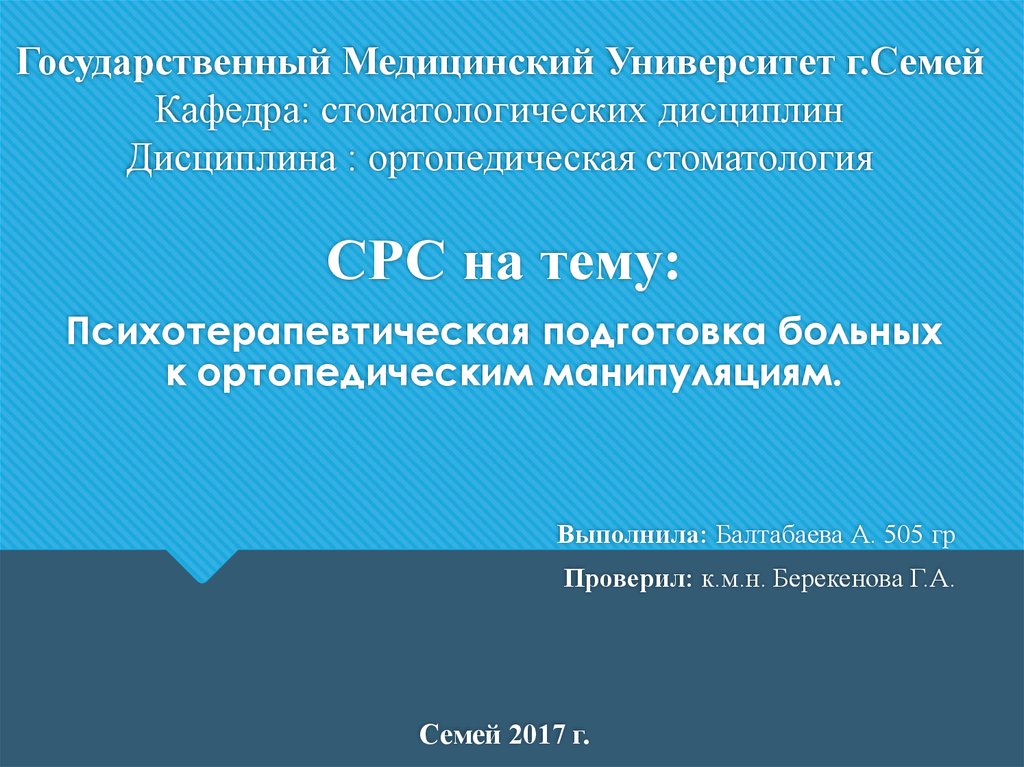 1. Государственный Медицинский Университет г.Семей Кафедра: стоматологических дисциплин Дисциплина : ортопедическая стоматология