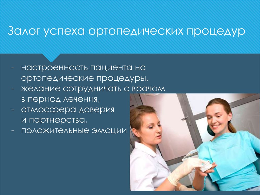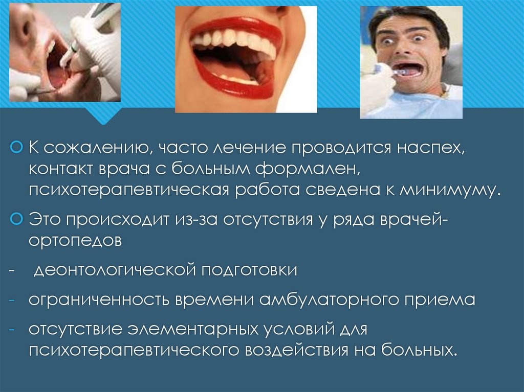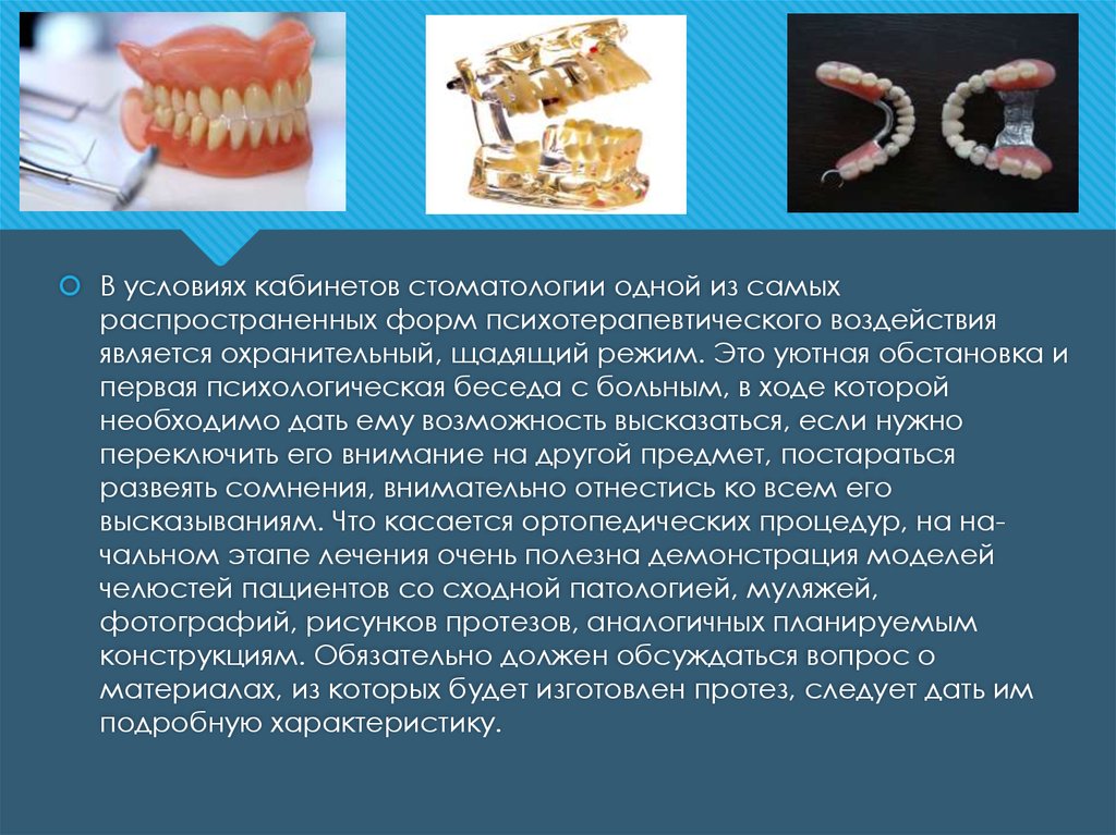 Таким образом, психотерапия должна стать неотъемлемойчастью специальной подготовки пациента к протезированию,
