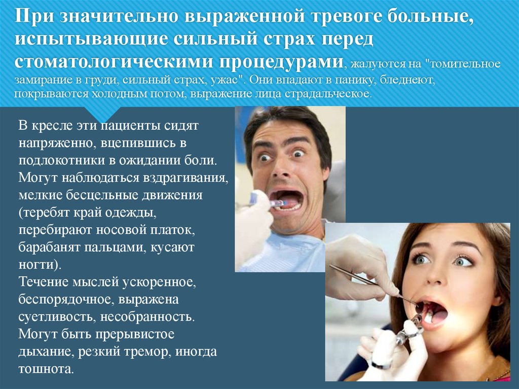 При значительно выраженной тревоге больные,испытывающие сильный страх перед