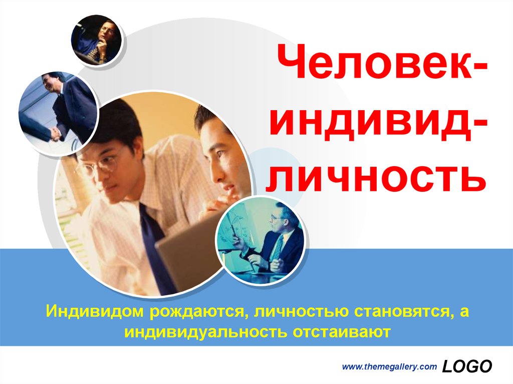 ЧеловекиндивидличностьИндивидом рождаются, личностью становятся, а