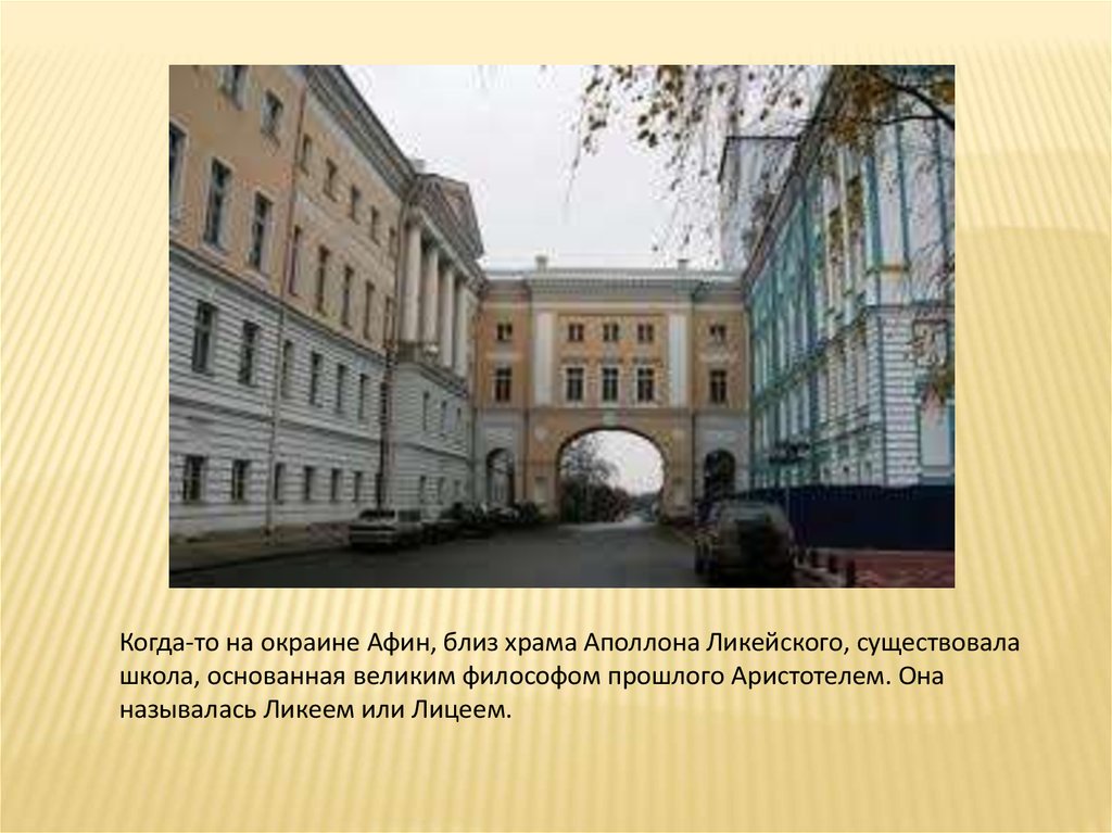 И, наверное, его создатели надеялись, что Царскосельский лицей вчем-то станет преемником знаменитой школы древности, о которой