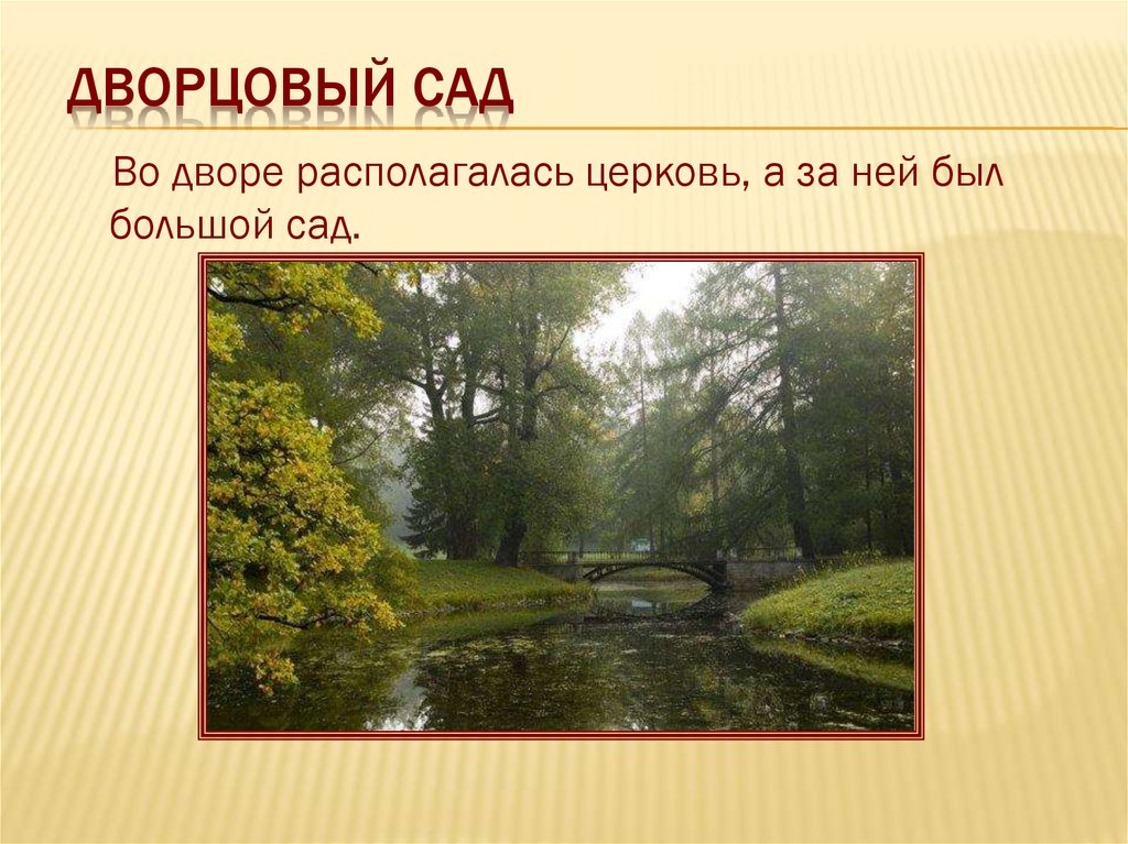 ДВОРЦОВЫЙ САДВо дворе располагалась церковь, а за ней был