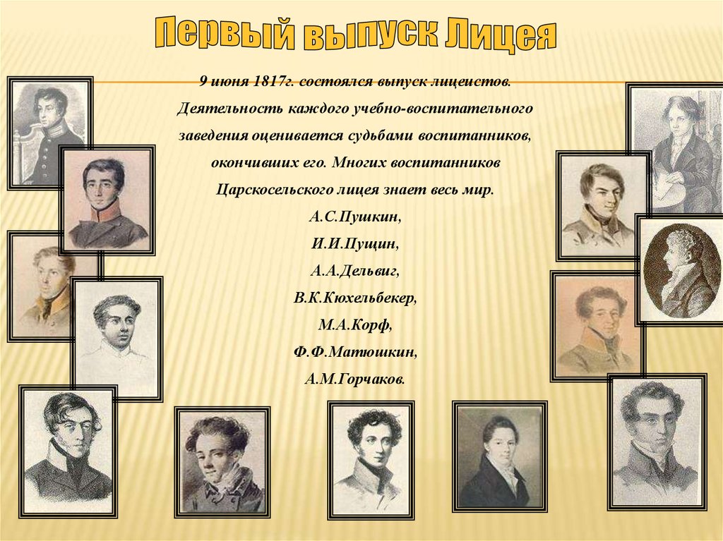 СУДЬБЫ ВОСПИТАННИКОВ ЛИЦЕЯА.С.Пушкин – родоначальник русской литературы