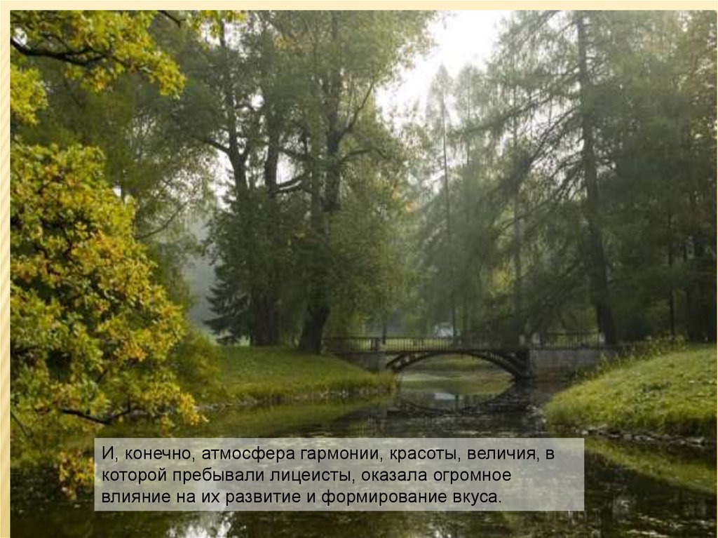 И, конечно, атмосфера гармонии, красоты, величия, вкоторой пребывали лицеисты, оказала огромное