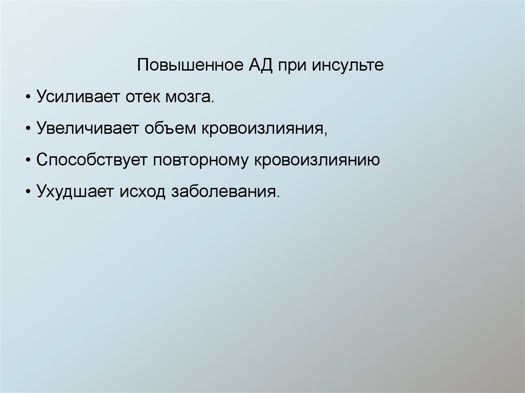 Повышенное АД при инсульте• Усиливает отек мозга.