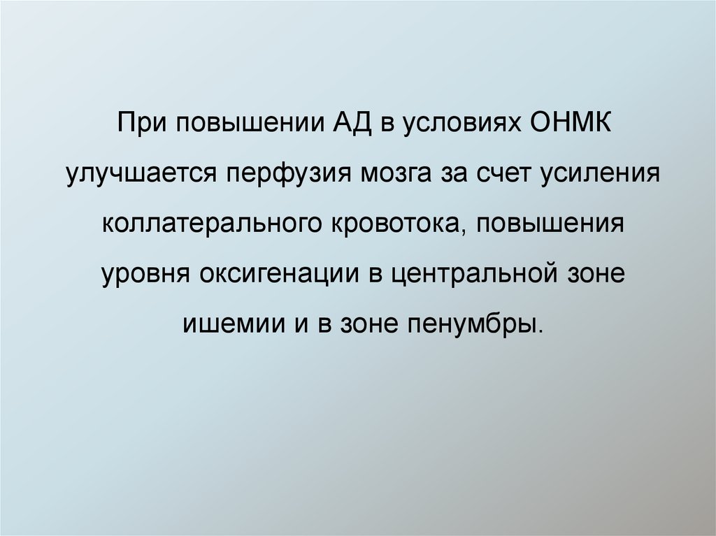 При повышении АД в условиях ОНМКулучшается перфузия мозга за счет усиления