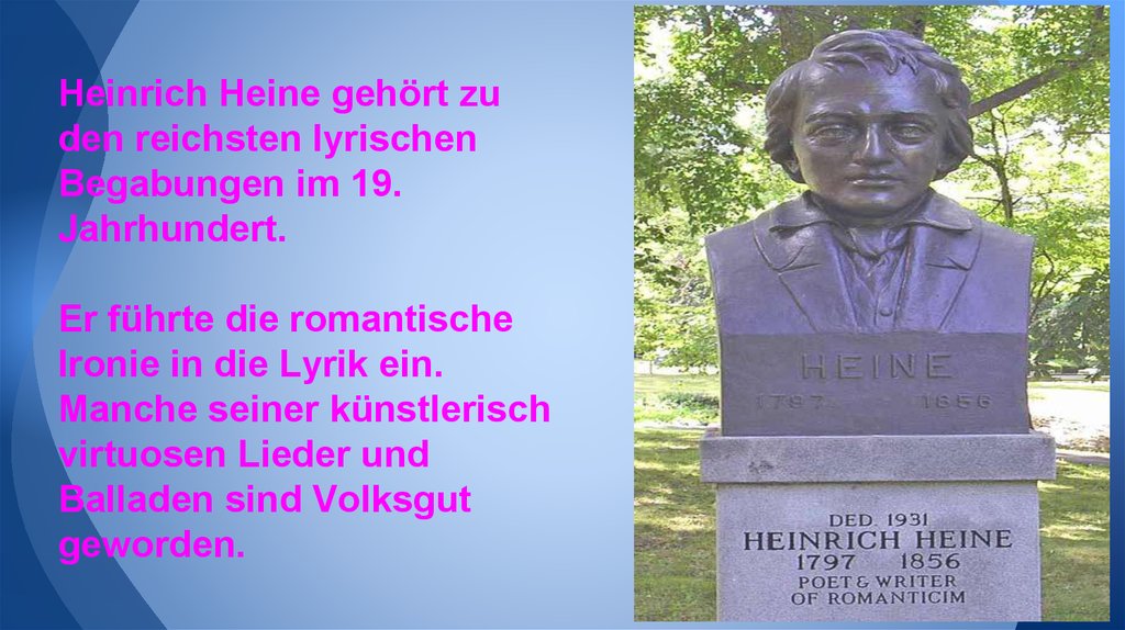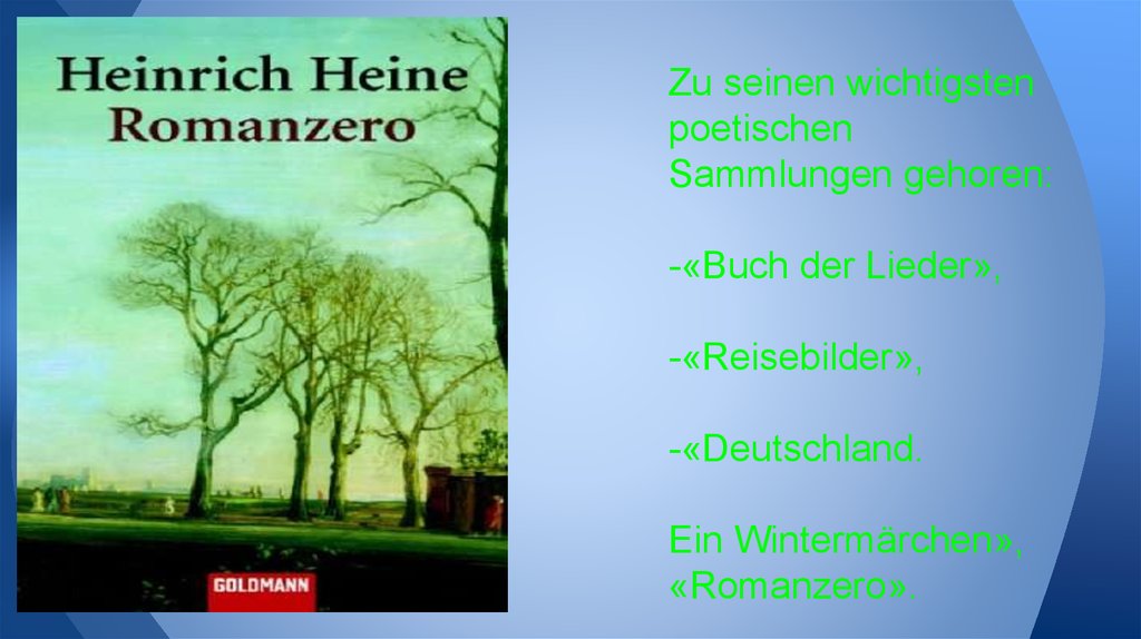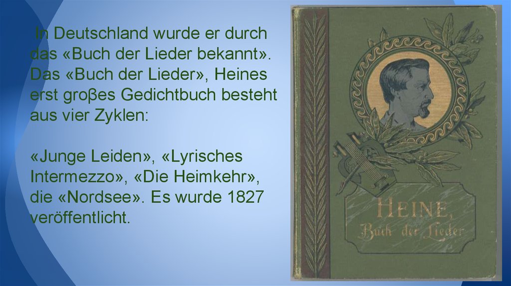 In Deutschland wurde er durchdas «Buch der Lieder bekannt».