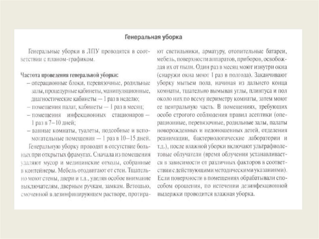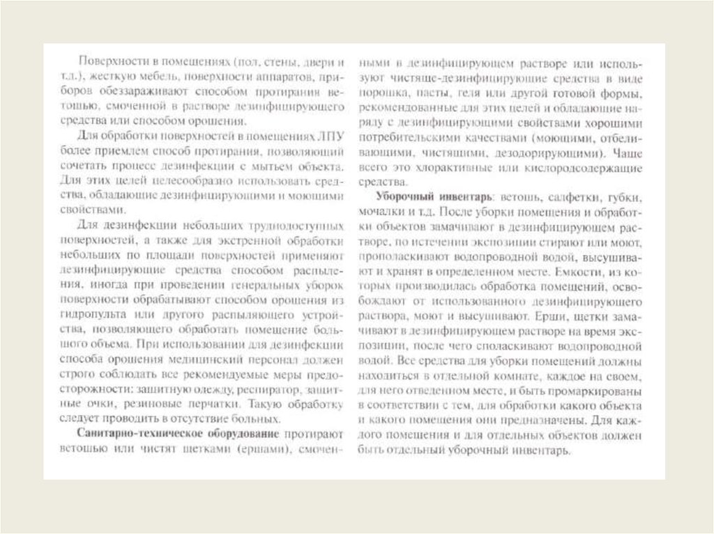 Цель дезинфекции: удаление и уничтожение микроорганизмов на объектахвнешней среды палат и функциональных подразделений ЛПУ, медицинском