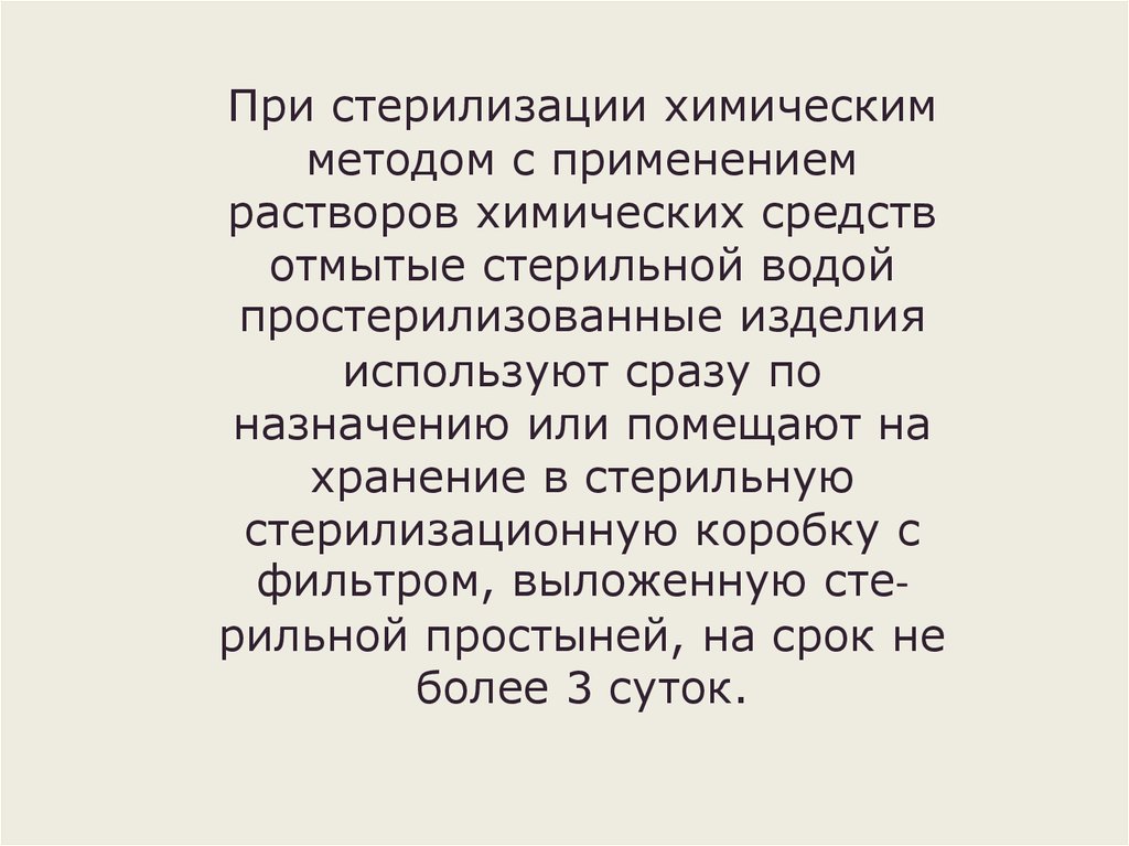 При стерилизации химическимметодом с применением