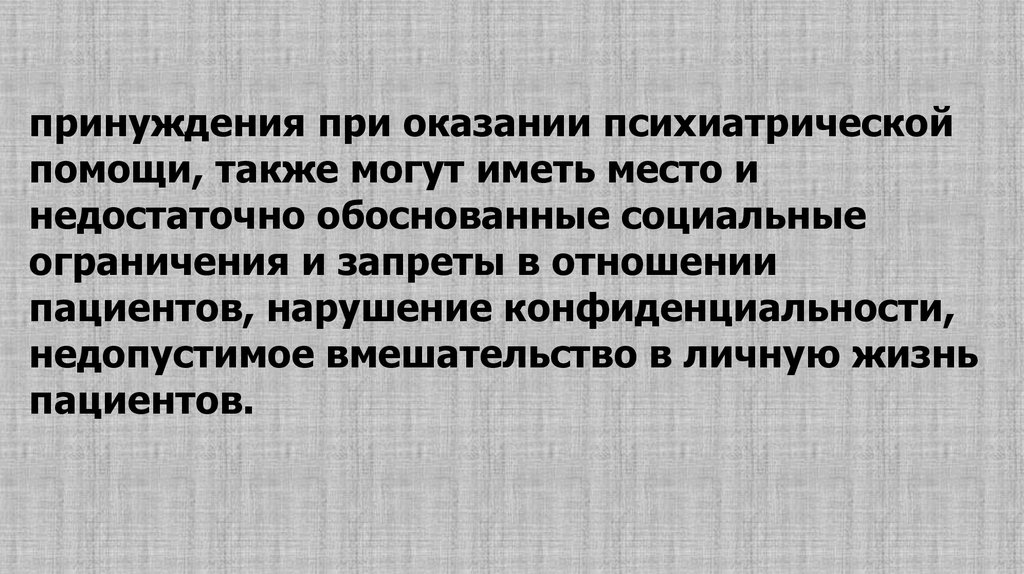 принуждения при оказании психиатрическойпомощи, также могут иметь место и