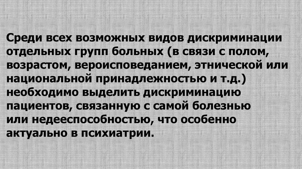 Среди всех возможных видов дискриминацииотдельных групп больных (в связи с полом,