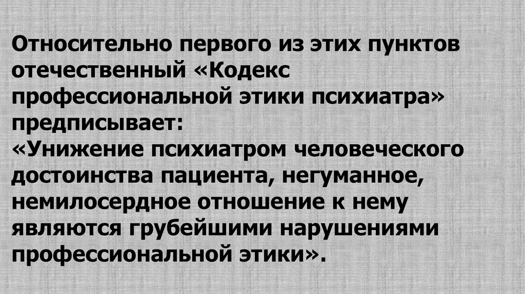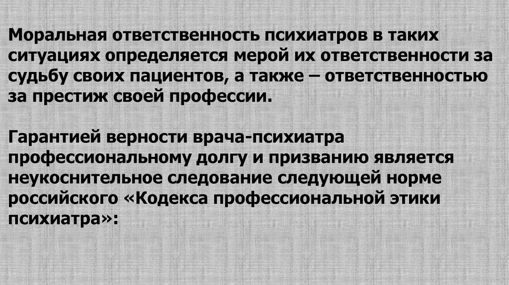 профессиональной этики психиатра».
