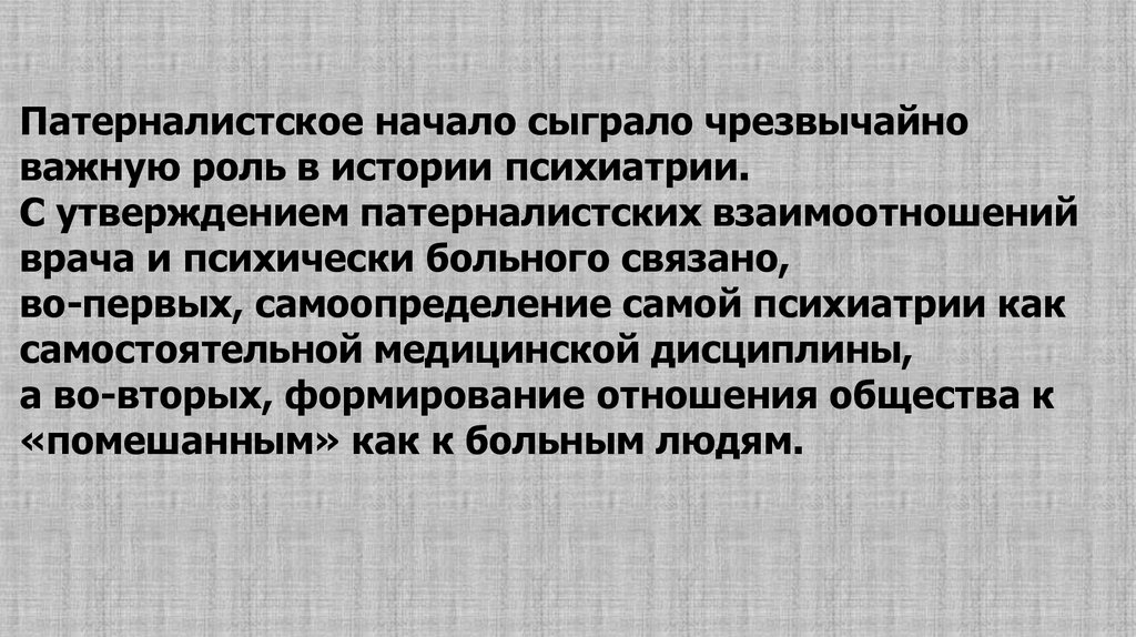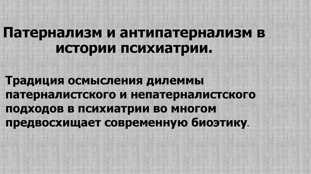 Патернализм и антипатернализм вистории психиатрии.