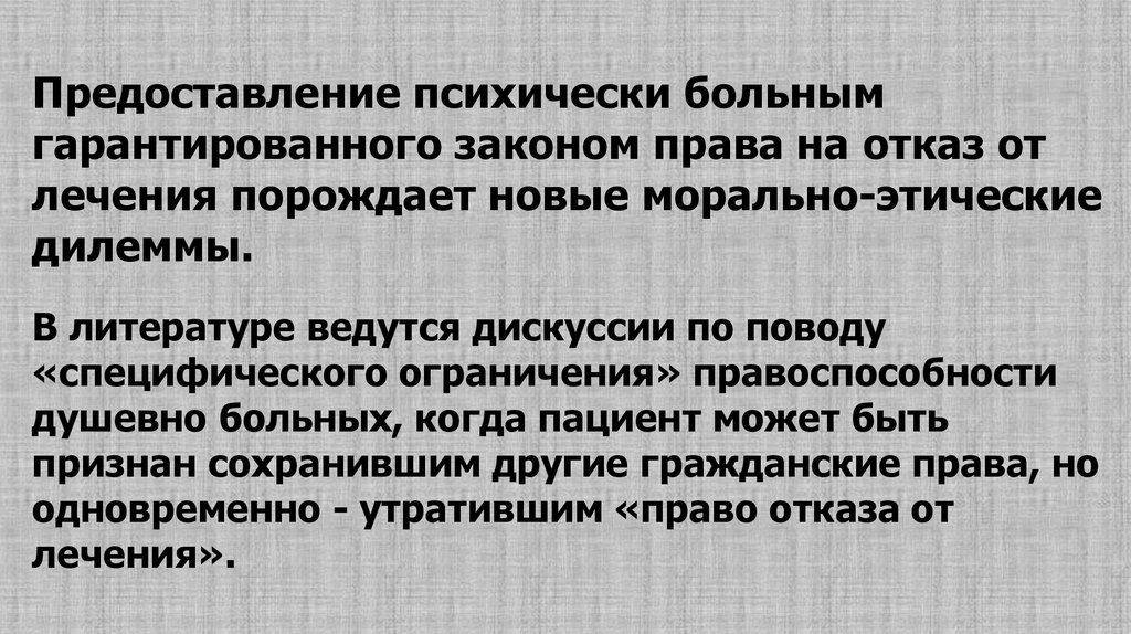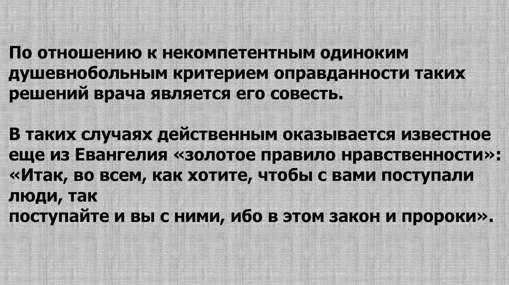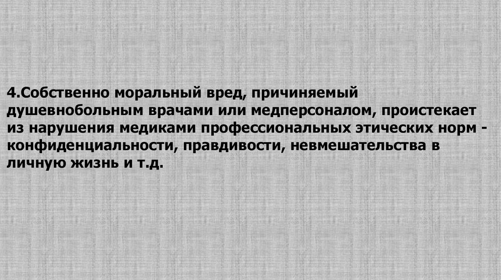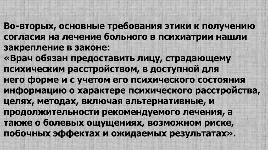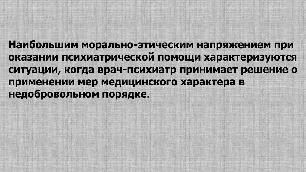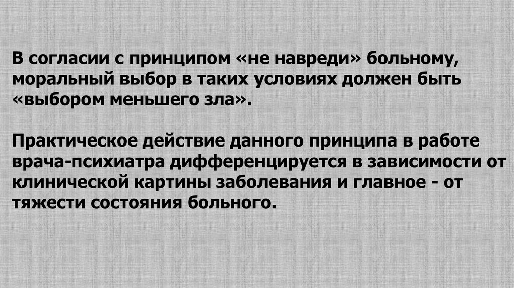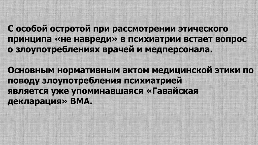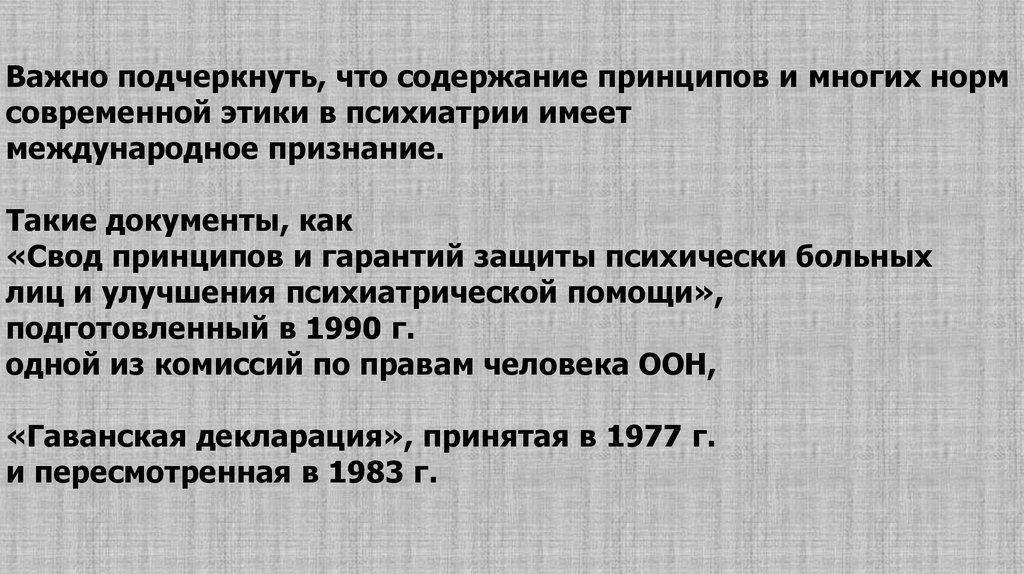 Важно подчеркнуть, что содержание принципов и многих нормсовременной этики в психиатрии имеет