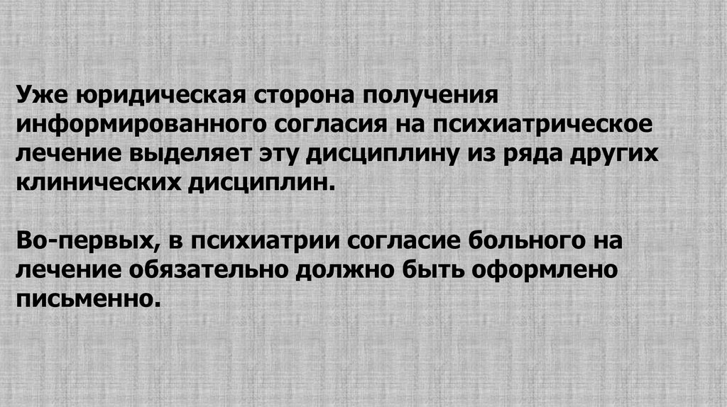 Это требование, разумеется, не распространяется наслучаи недобровольной госпитализации.