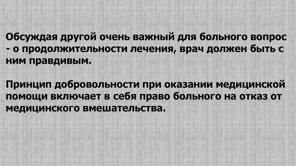 Что соответствует благополучию пациента чтобы жена знала правду о диагнозе и прогнозе