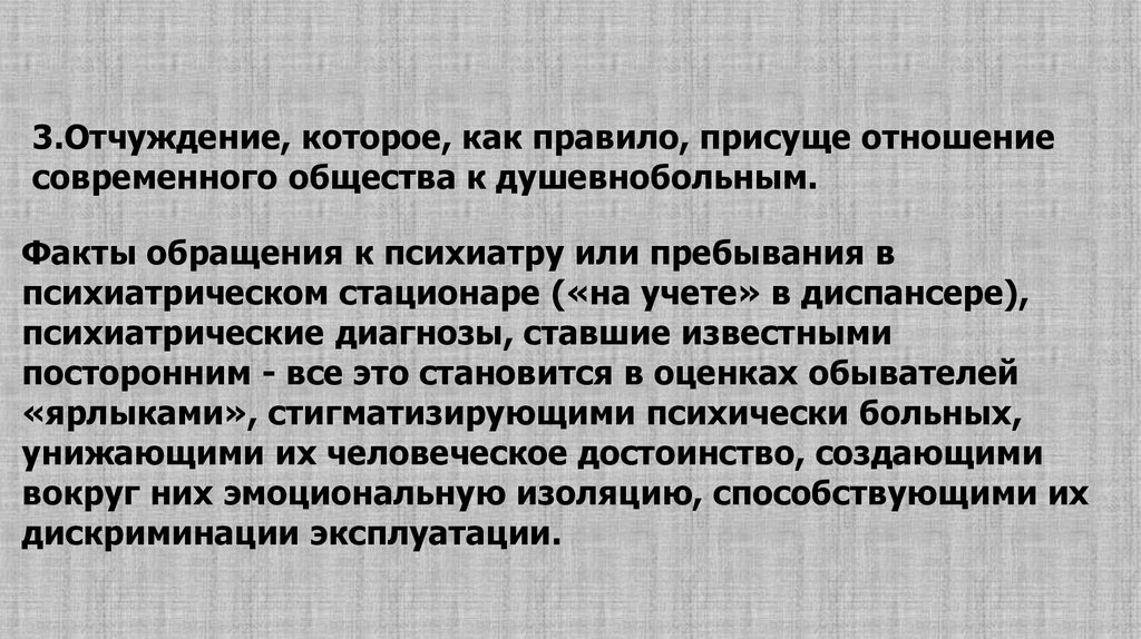 Проявления дискриминации душевнобольных приоказании им медицинской помощи могут