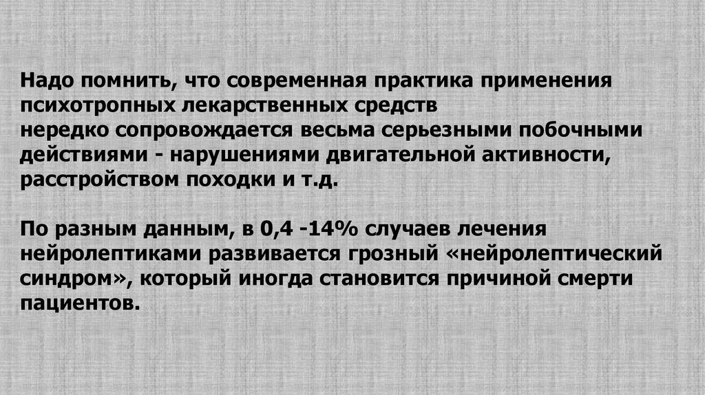 Да и лечение нейралептиками можетосложниться нейролептическим