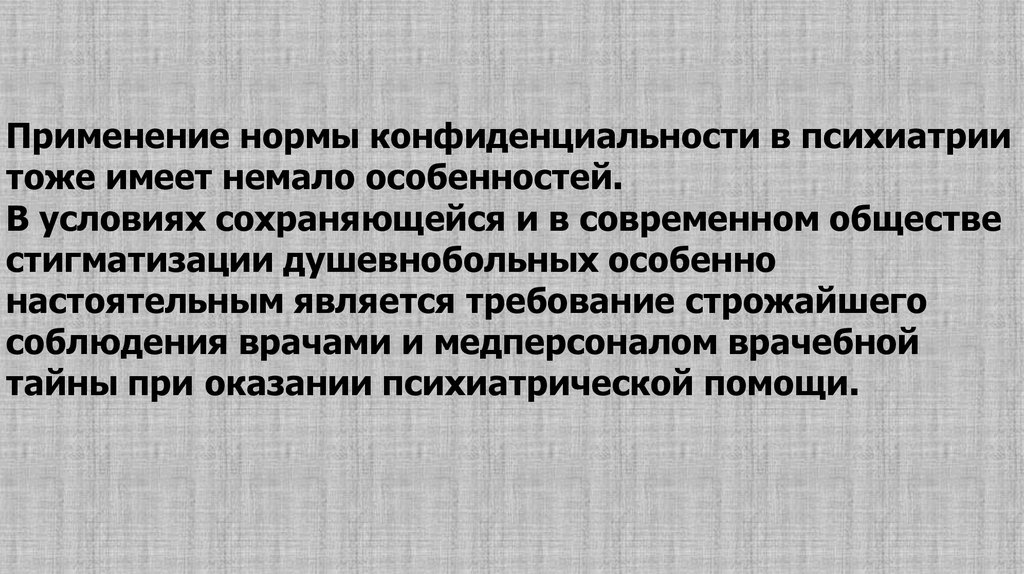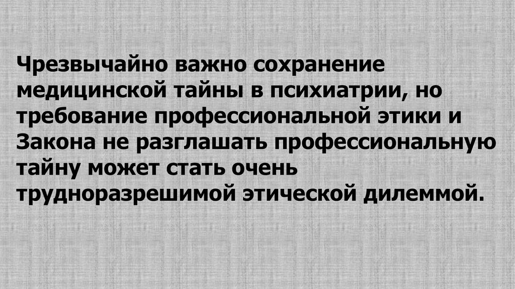 Чрезвычайно важно сохранениемедицинской тайны в психиатрии, но