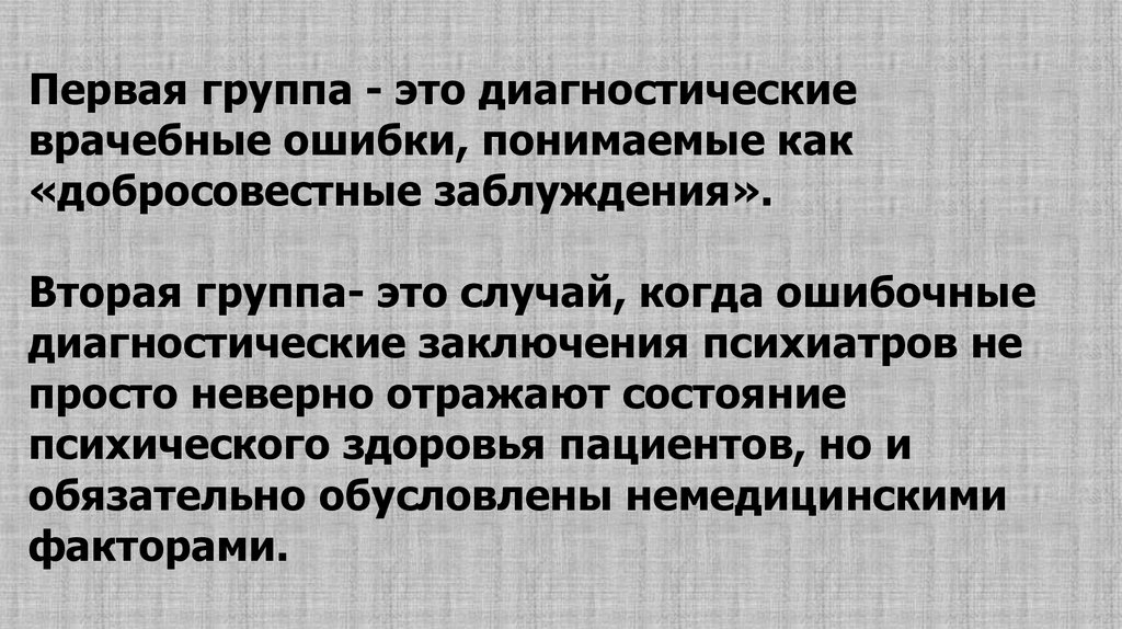 Первая группа - это диагностическиеврачебные ошибки, понимаемые как