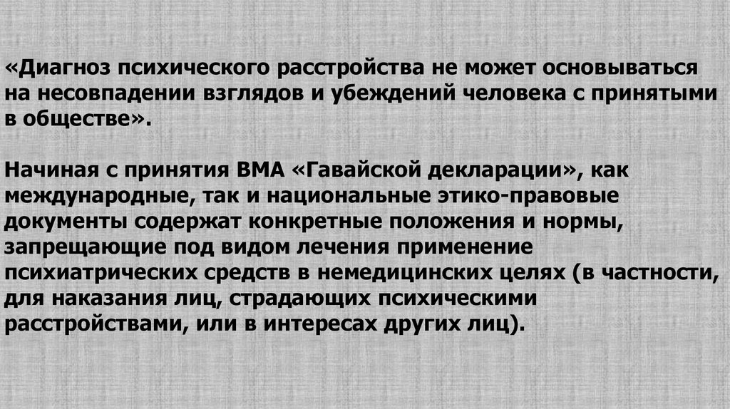 «Диагноз психического расстройства не может основыватьсяна несовпадении взглядов и убеждений человека с принятыми